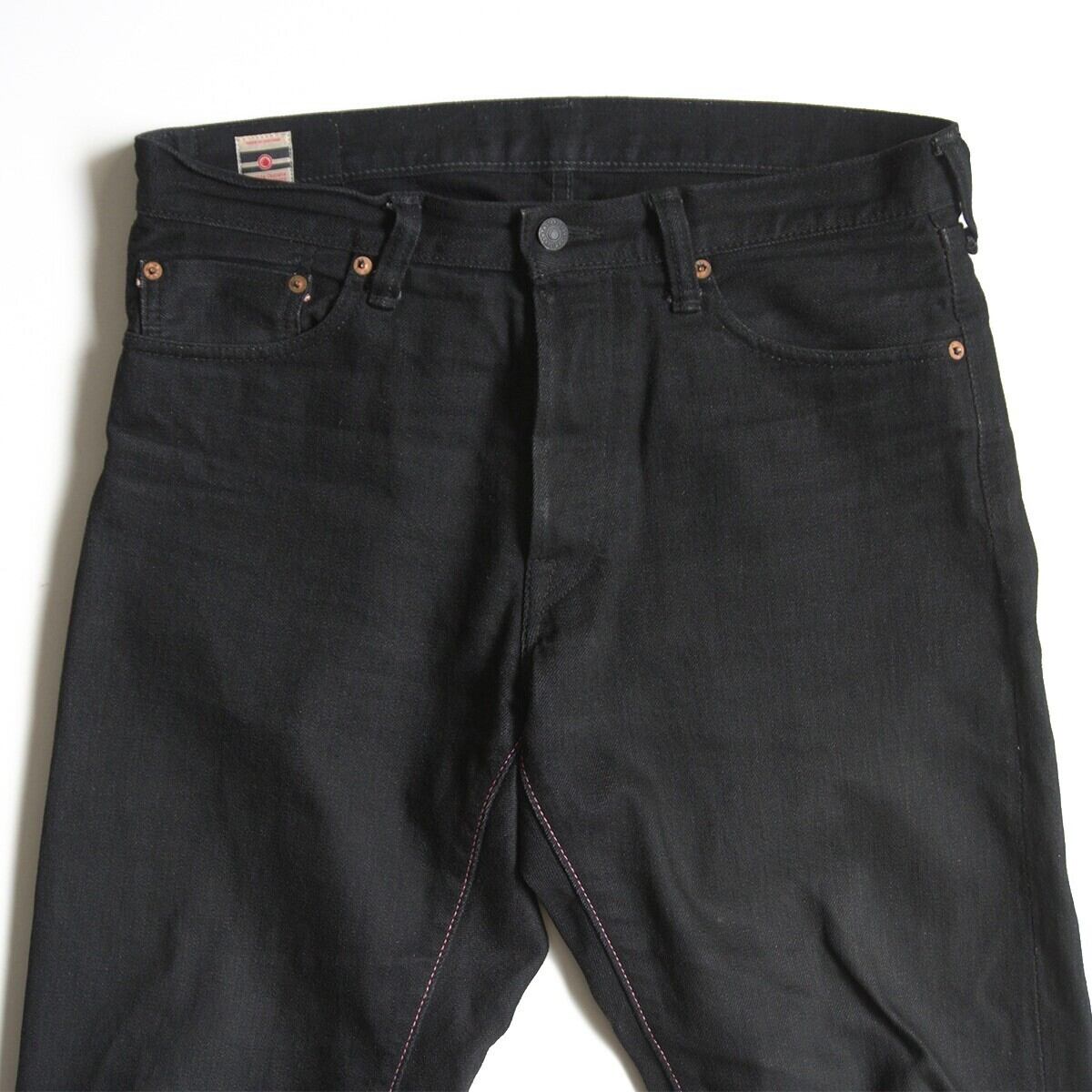 【美品】 桃太郎ジーンズ【B0205SP/出陣スリムストレート ボタンフライ】33 ブラックデニムパンツ s2604112