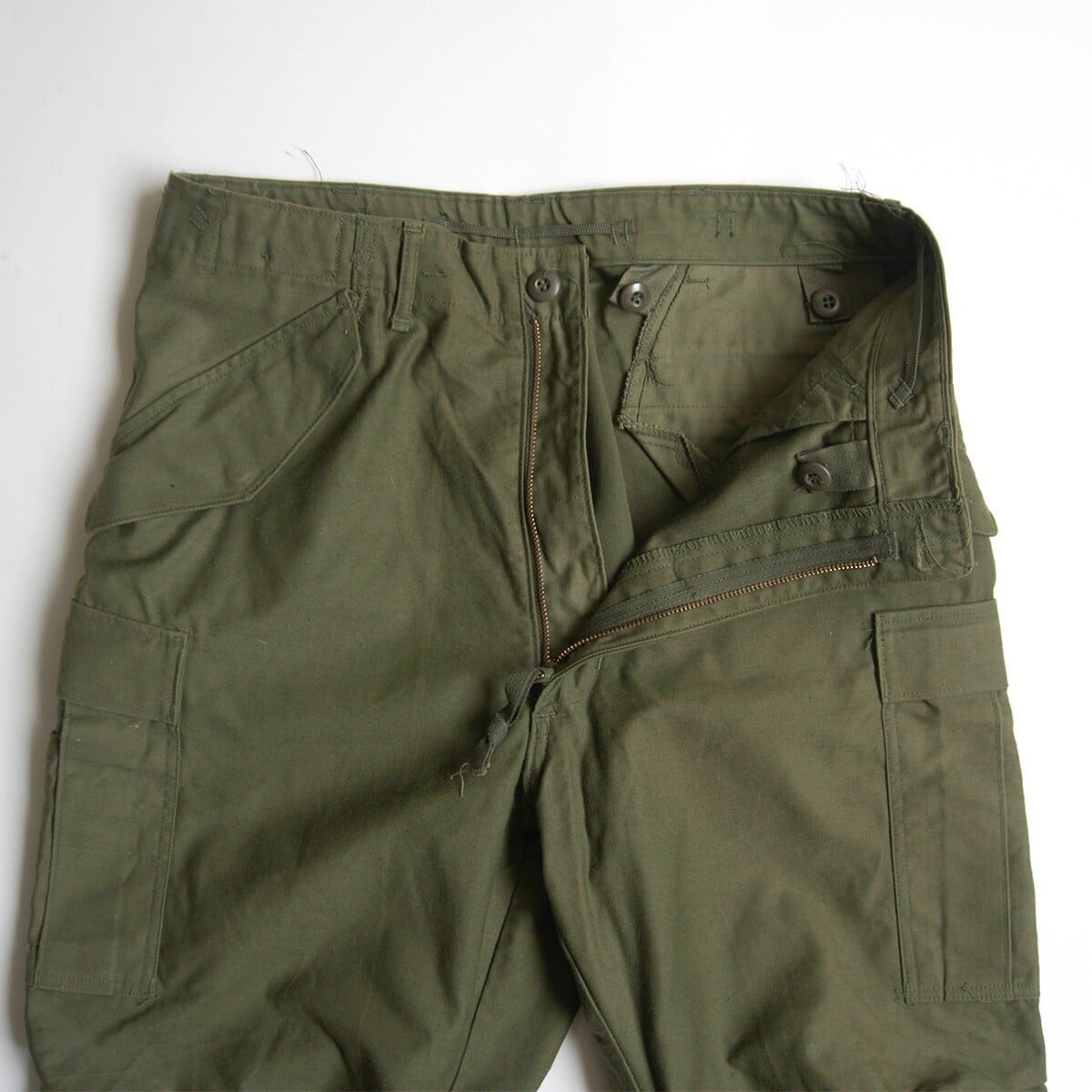 アメリカ軍が1965年に採用したフィールドパンツ M-65。多くのブランドがこれを元にカーゴパンツをリリースしています。ズドンとしたストレートシルエットが魅力です。計6つのポケット。全てフラップ付きでスナップボタンで留められます。ジッパーフライ、ウエストのサイド部分にはアジャスターが付いています。お探しの方や気になる方は是非。