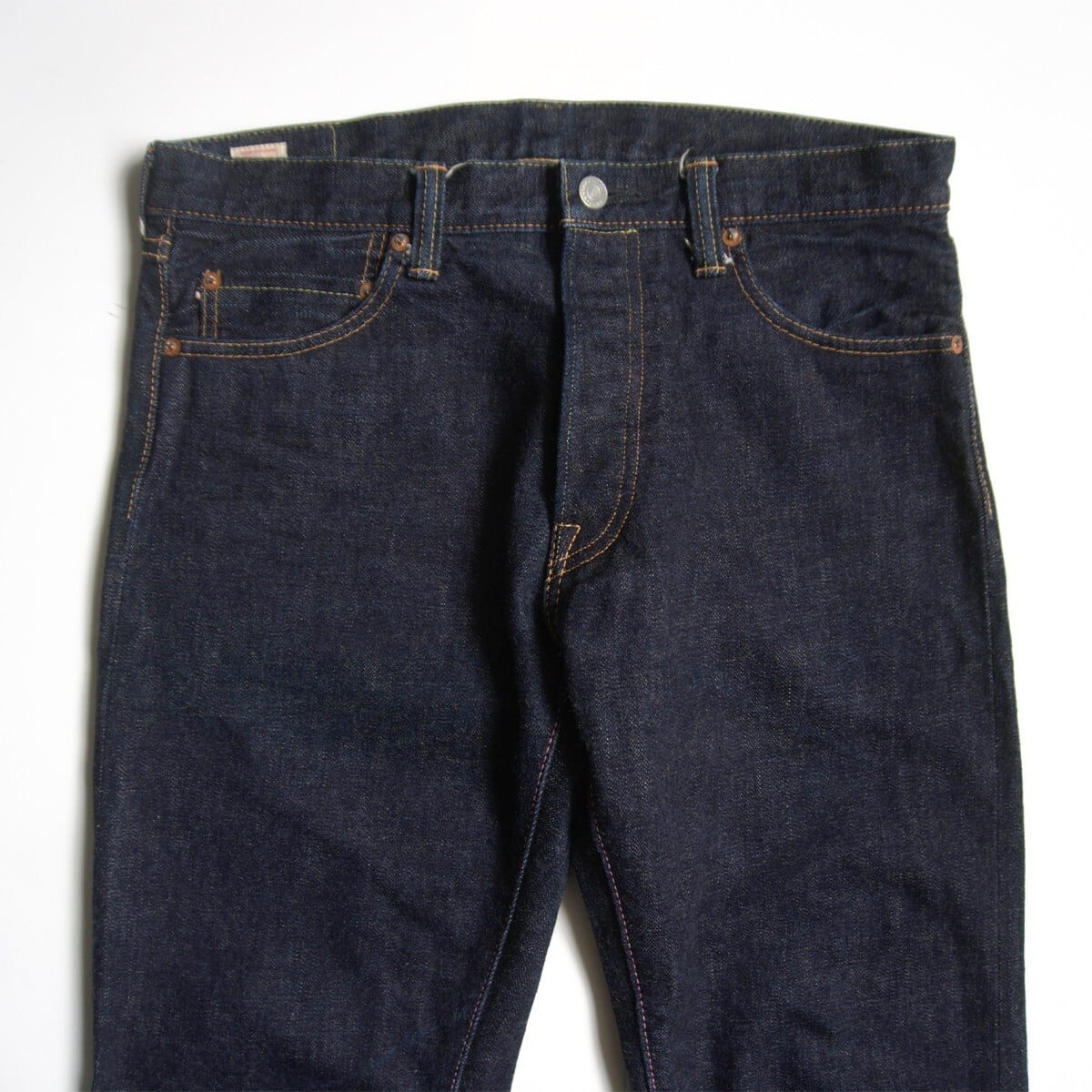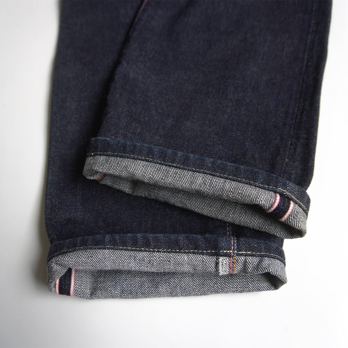 ロープ染色を繰り返し特濃インディゴブルーに染めたジンバブエコットン使用した1本。浅めの股上で若干のテーパードのきいた、ヒップ周りから裾まで全体的に細身なシルエットです。これから経年変化をお楽しみいただけます。
