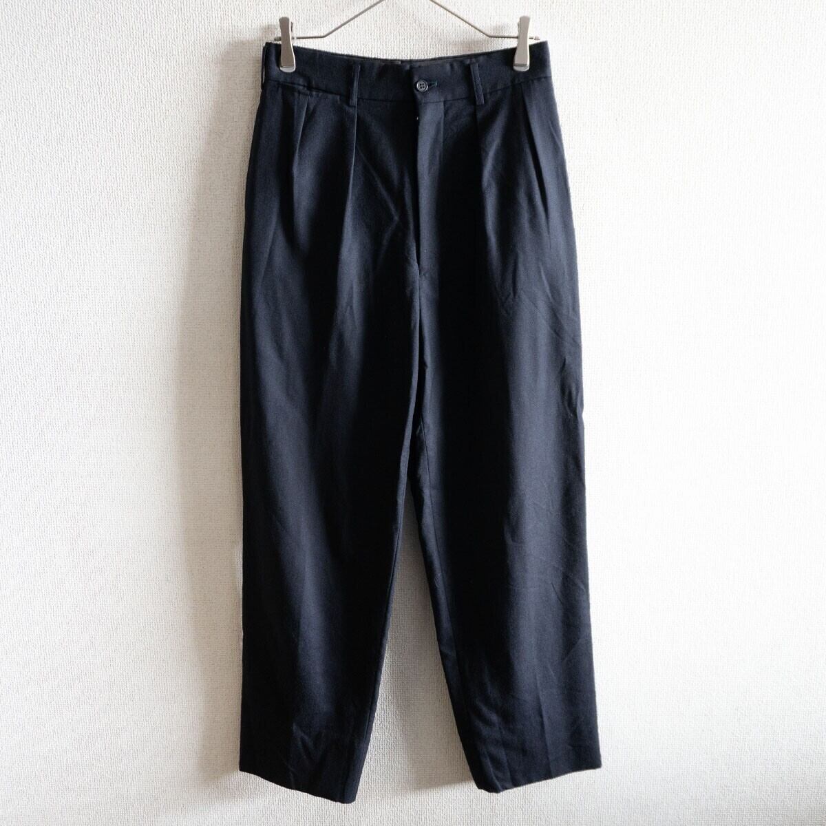【90S/L.Q.】Y's for men【2タック ワイドテーパード スラックスパンツ】L ネイビー ウール 90年代 YOHJI ワイズフォーメン s2604120