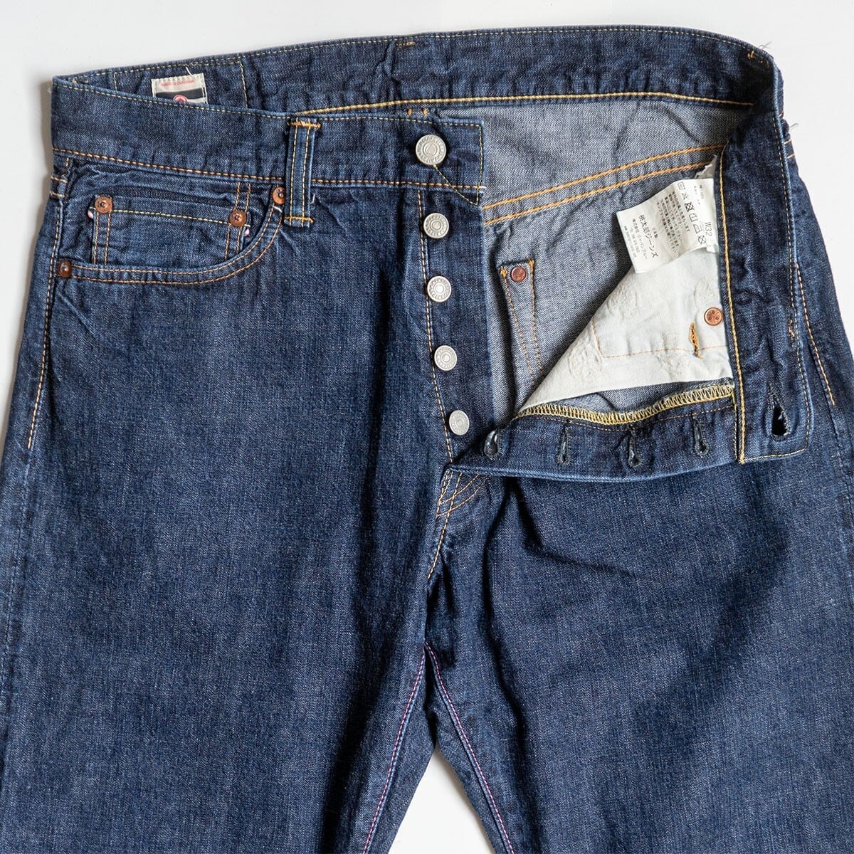 【美品】 桃太郎ジーンズ【1201SP 10oz セルビッチスリムストレート ボタンフライ】32 ライトオンス デニムパンツ s2604133