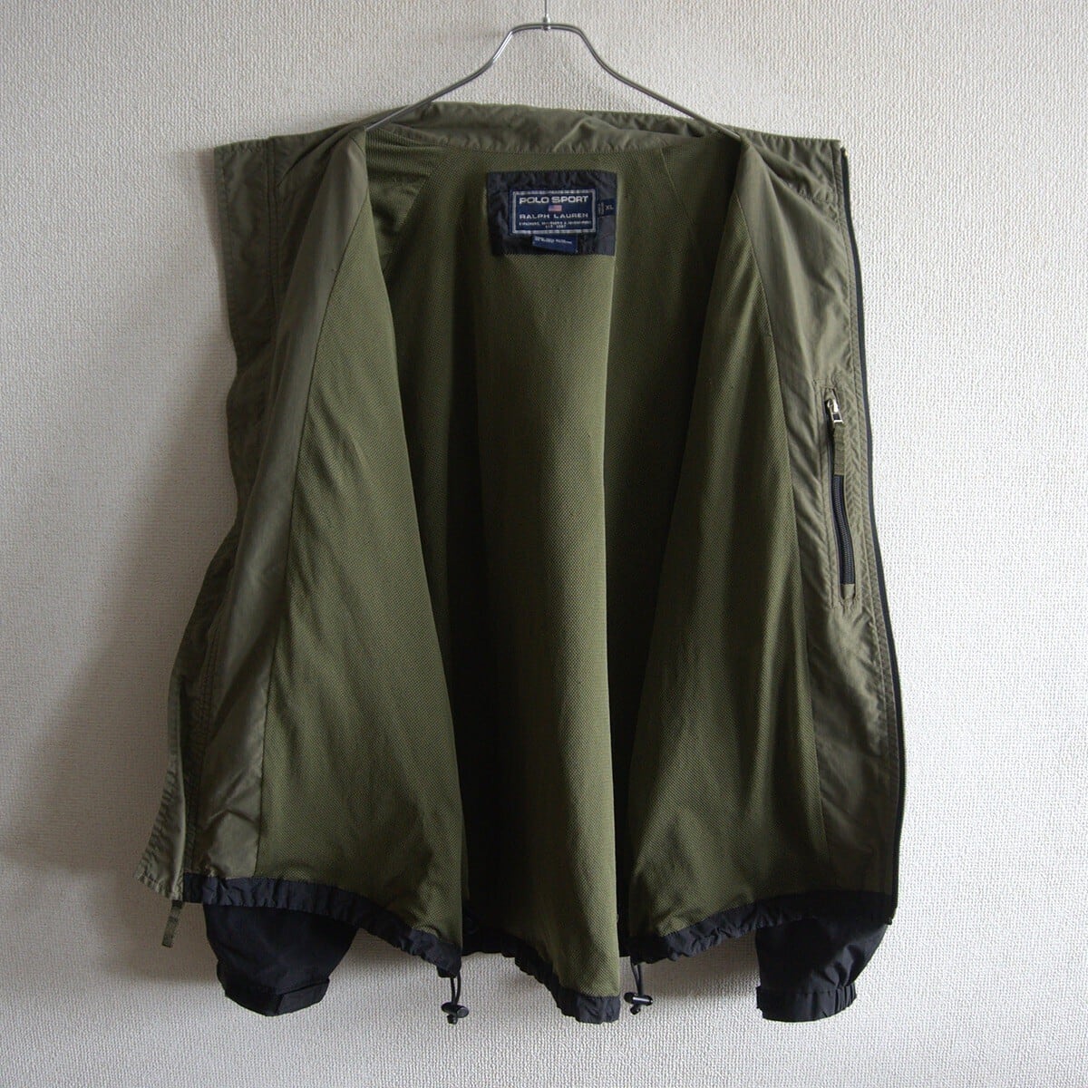 90年代のPOLO SPORTナイロンジャケットです。年代特有のガシガシとしたナイロンとボックスシルエットが特徴のお品物です。お探しの方や気になる方は是非。