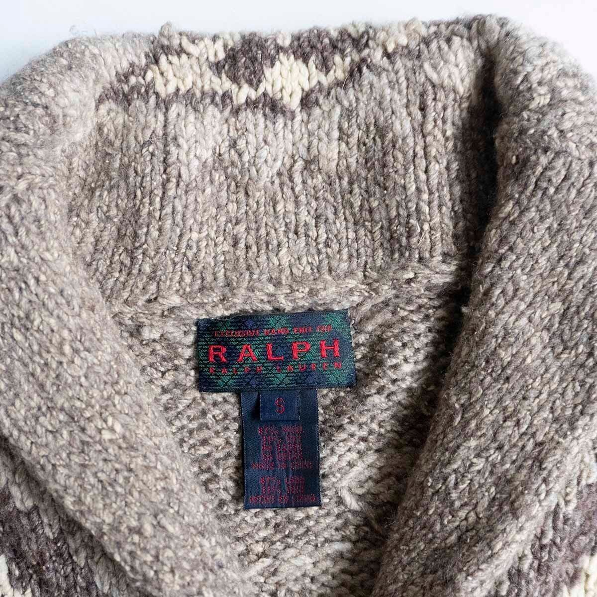 【希少】RALPH LAUREN 【ハンドニット ネイティブ ショールカラー ガウン】S カーディガン ニット ラルフローレン 2402009