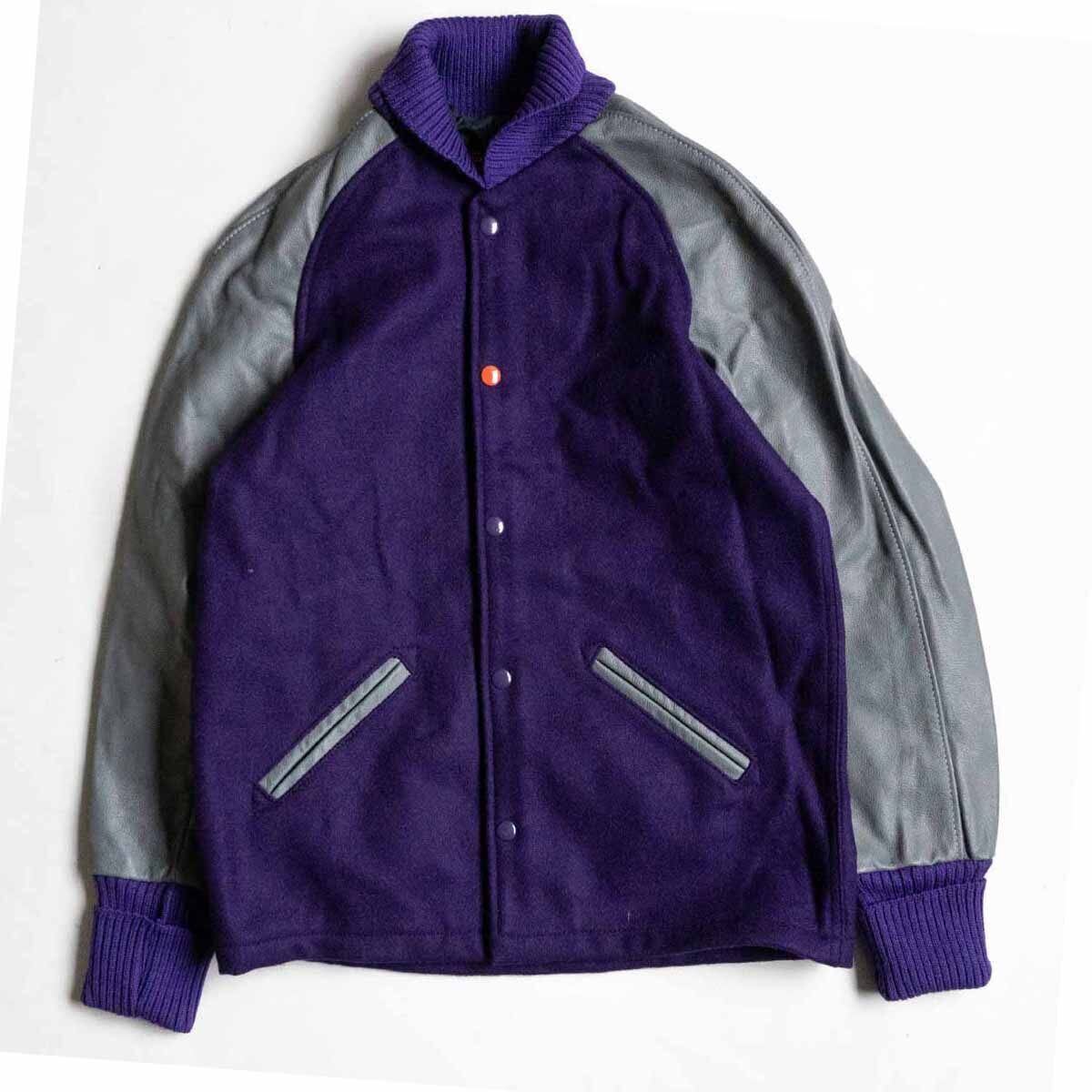 スクーカム定番のスタジャンです。お色はパープル×グレー。