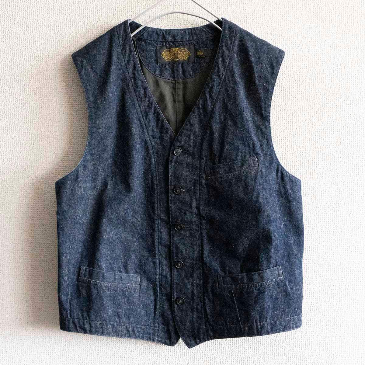 コットン×ヘンプの9.7オンスのネップデニム地をフロントボディに採用した1900年代初頭のウエストコートを彷彿とさせる逸品。言わずもがななネップデニム地の生地感も秀逸で、加工を施したボタンとバックのシンチバック、三つのウエルトポケットとアンティークな仕上がりです。ワークテイスト、またトラッドスタイルにも通ずるバイプレイヤー。
