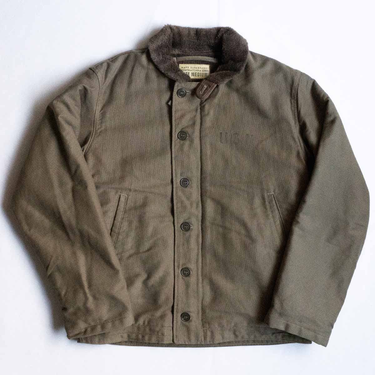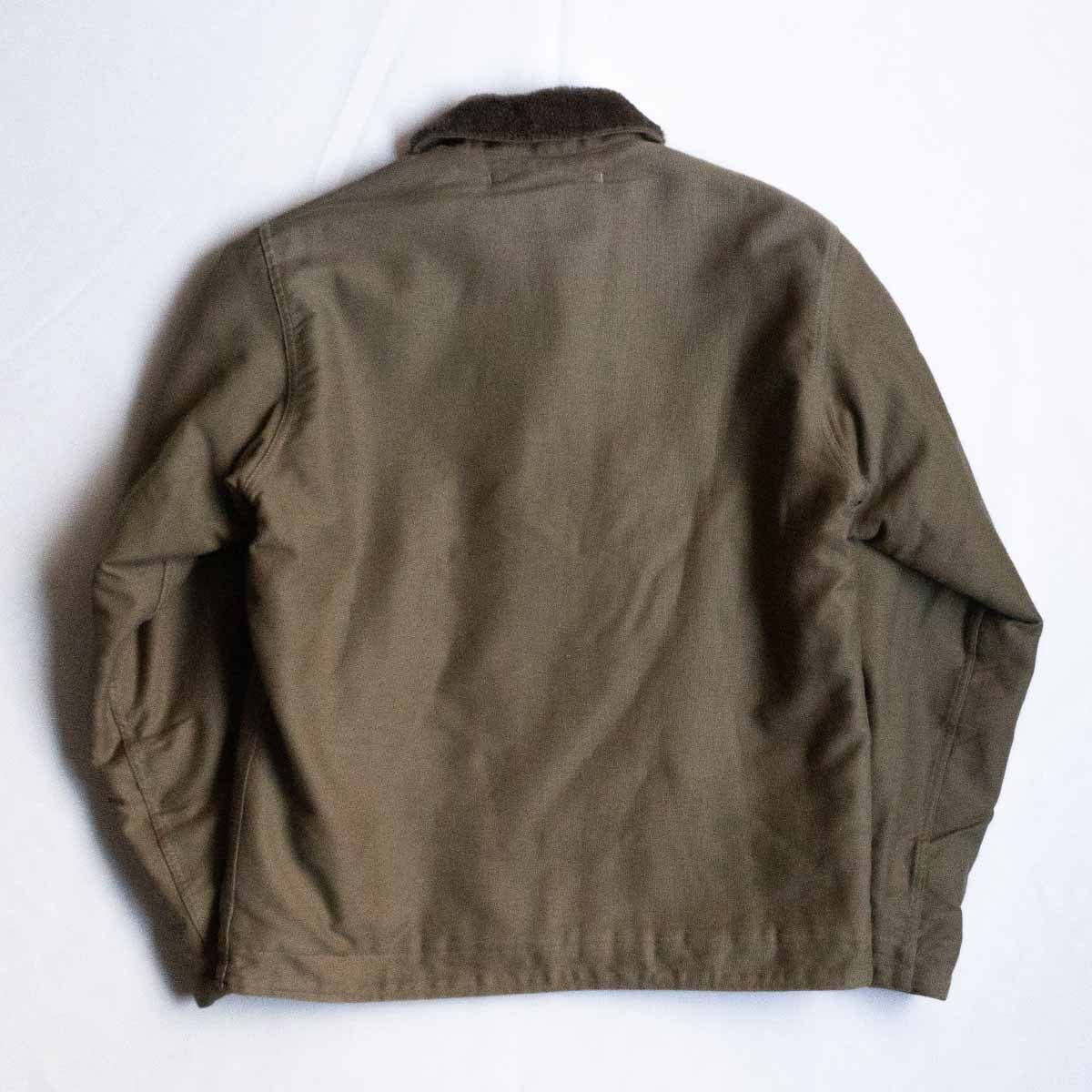 第二次世界大戦から朝鮮戦争にかけ米海軍の艦艇乗員用として採用されたN-1デッキジャケット。こちらの表素材には他のデッキジャケットと同様で通称"ジャングルクロス"と呼ばれるコットングログランが使用され、裏地には遮風性と保温性に優れたアルパカ・モヘア・ウールパイルが使用されています。防寒性抜群の1着です。お探しの方や気になる方は是非。