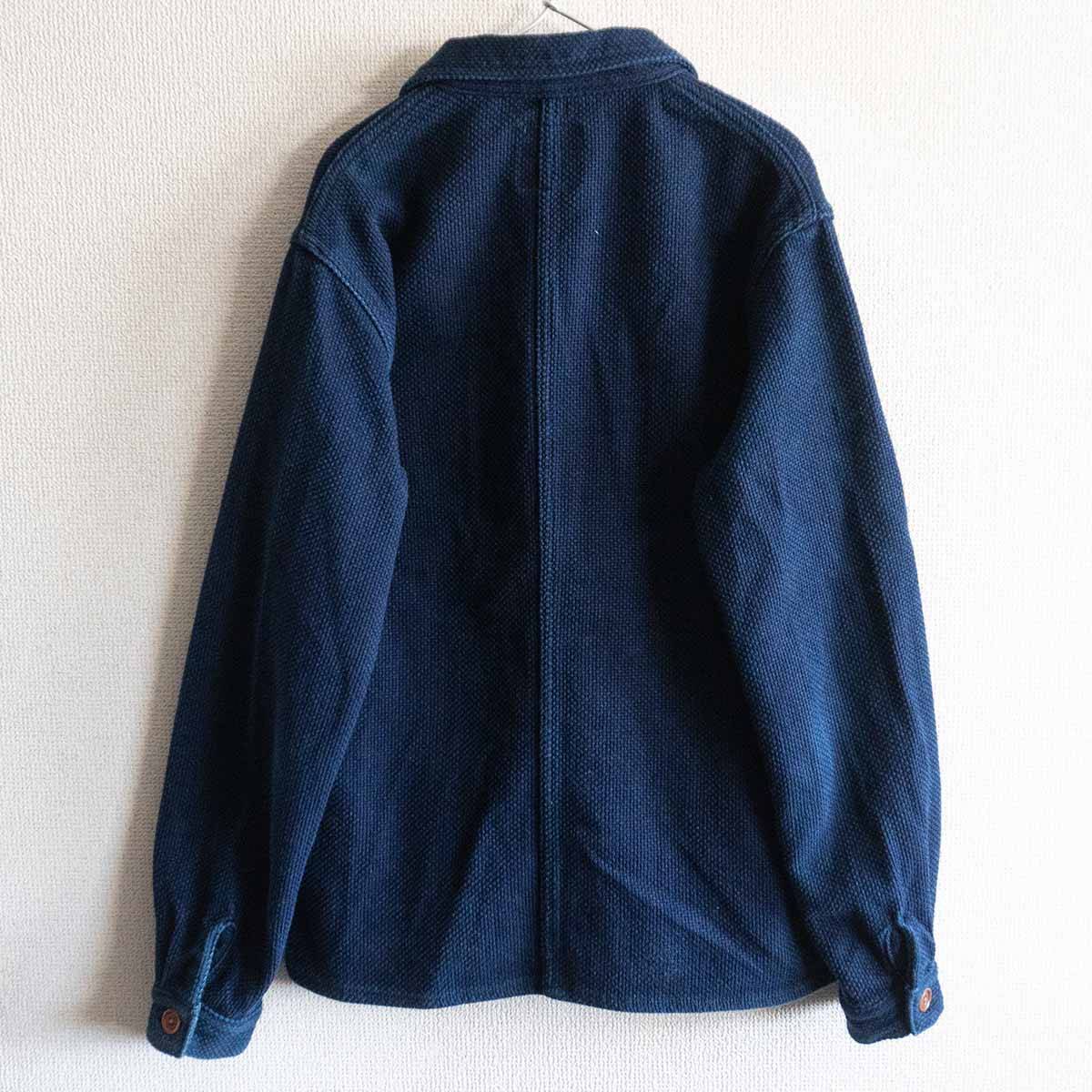 インディゴ染めされた刺し子生地を使用した雰囲気抜群の1着。お探しの方や気になる方は是非。