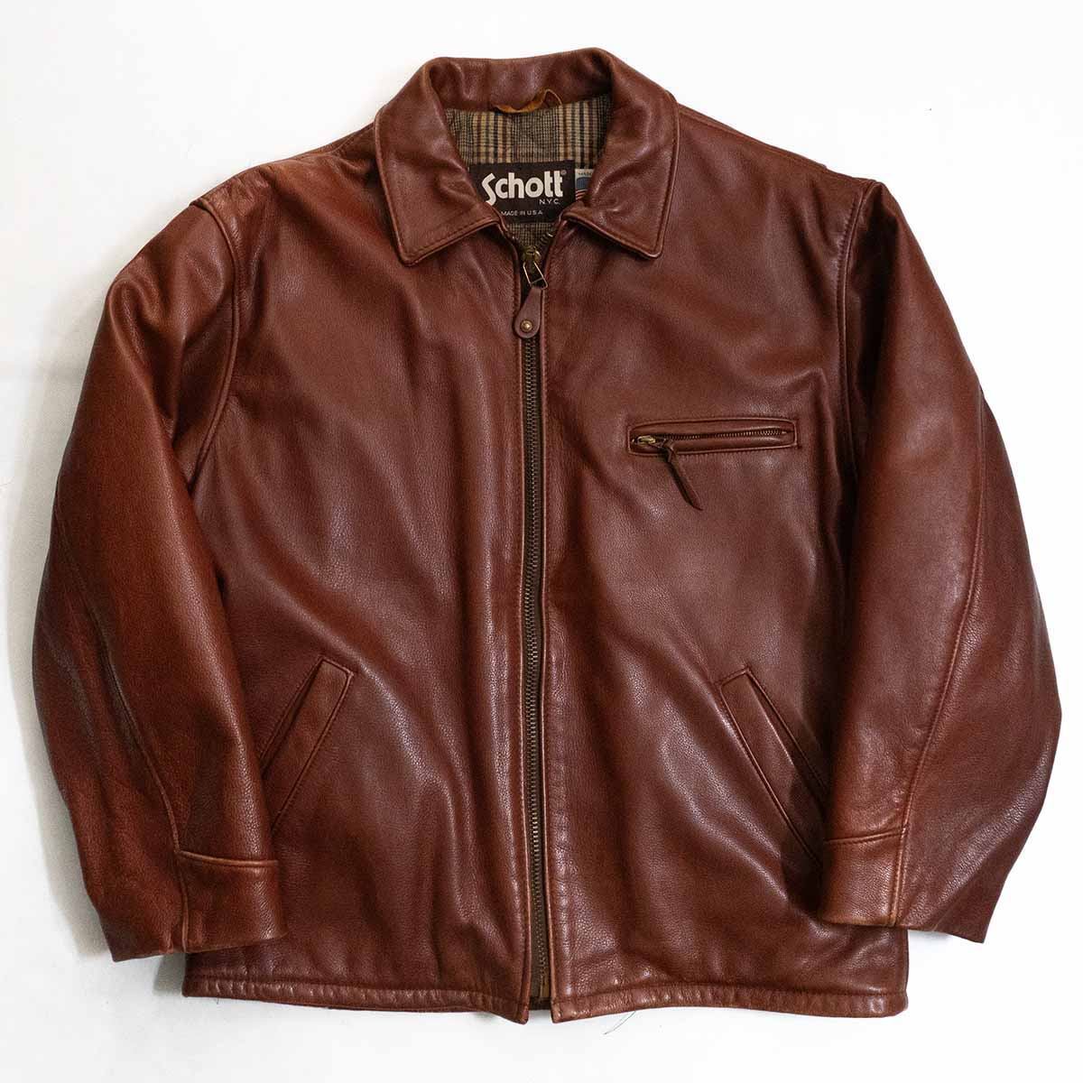 【雰囲気抜群/ビッグサイズ】SCHOTT【136/シングルライダースジャケット】44 襟 レザー アメリカ製 ショット 25020441
